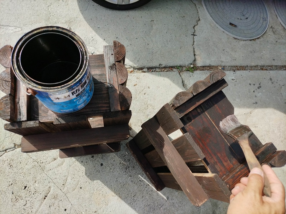 雨ざらしになる場所に置くので、重ね塗りする必要があります。