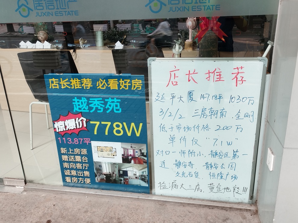 上海のとある不動産屋で出ている看板。手書きのアピール度高い( ^ω^ )