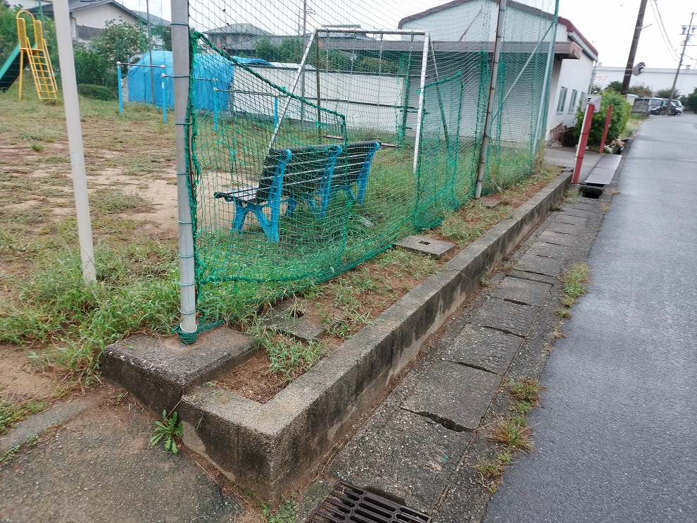 ベンチ下の草は刈り取りにくいので根絶やしにします(ノ`Д´)ノ