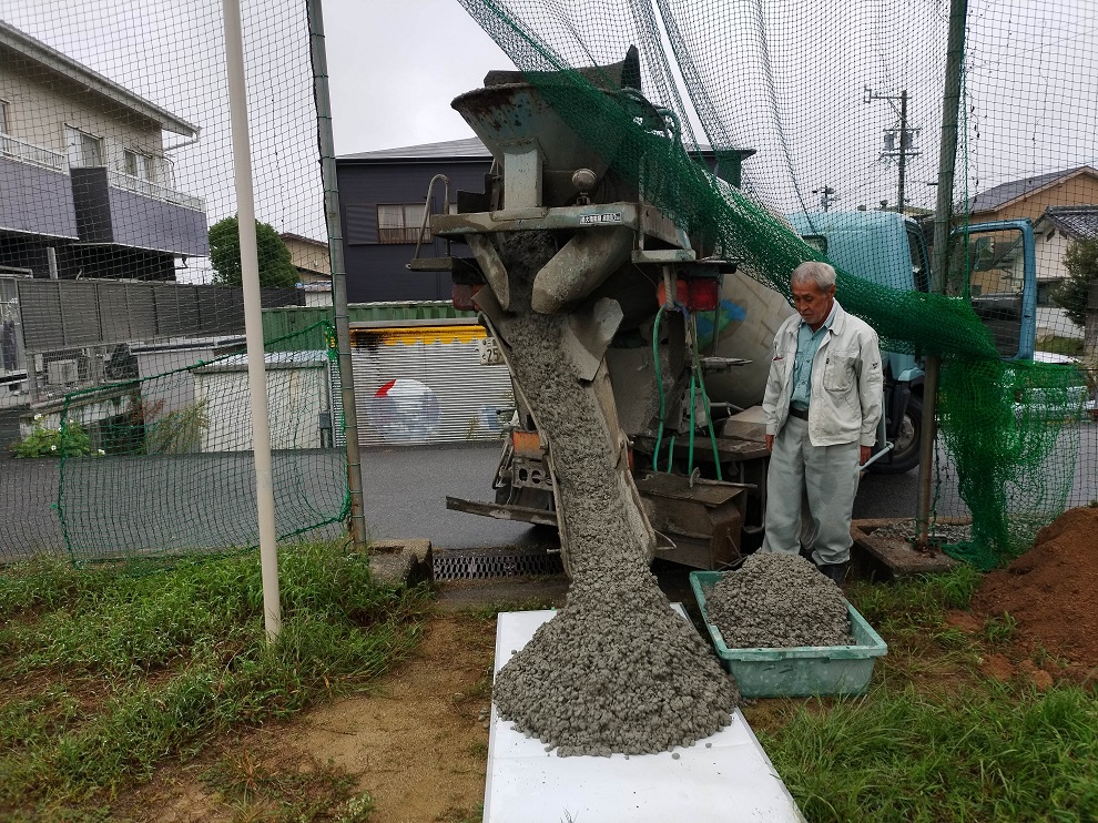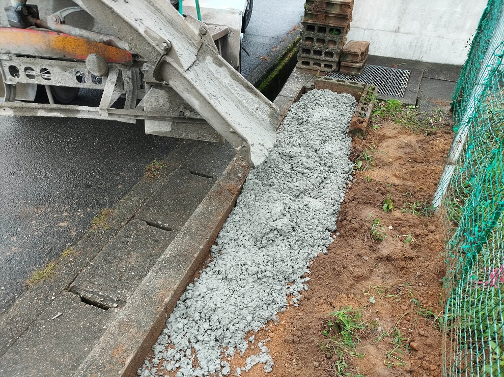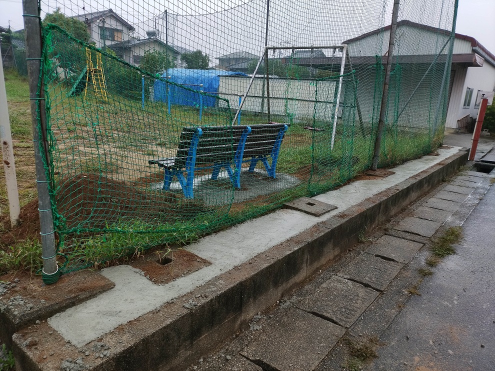 境界からネットまでの数十センチ巾にコンクリを打ちます(´・ω・`)ノ