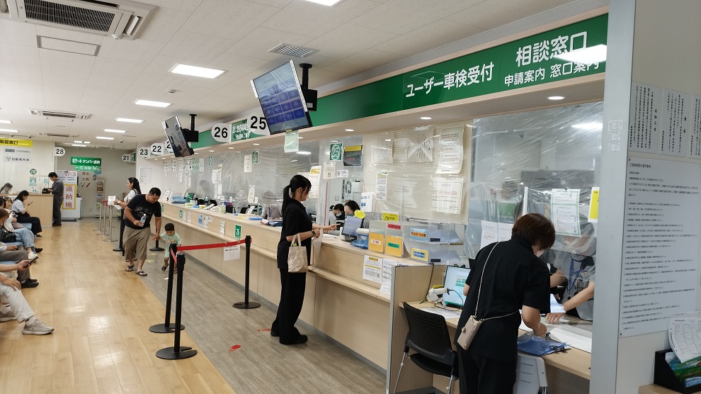 自賠責や重量税、手数料を各窓口で支払います。受付を済ませて検査ラインへ。